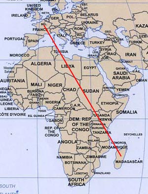 Nous avons décidé d’ouvrir un nouveau pays, Madagascar, et plus précisément une petite ile située à une dizaine de km au Nord-Est : l’ile de Sainte Marie, 160 km2, 49 km de long sur 5 km de large, et une population de 26500 habitants.