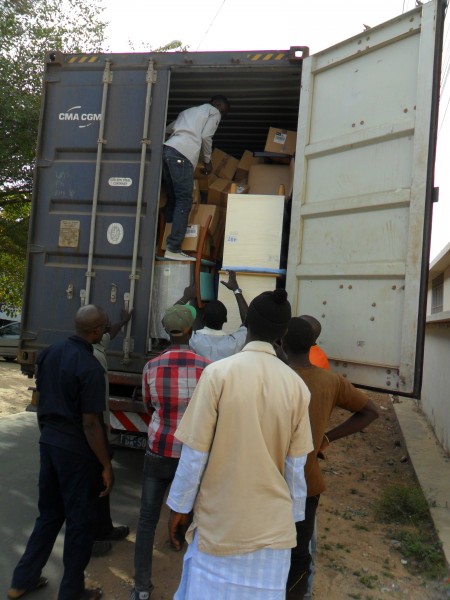 Le conteneur est enfin arrive au Centre Hospitalier Regional El Hadji Ibrahima NIASS de Kaolac !! Il est en cours de déchargement. Merci au directeur Saliou Tall de nous tenir au courant! :-)